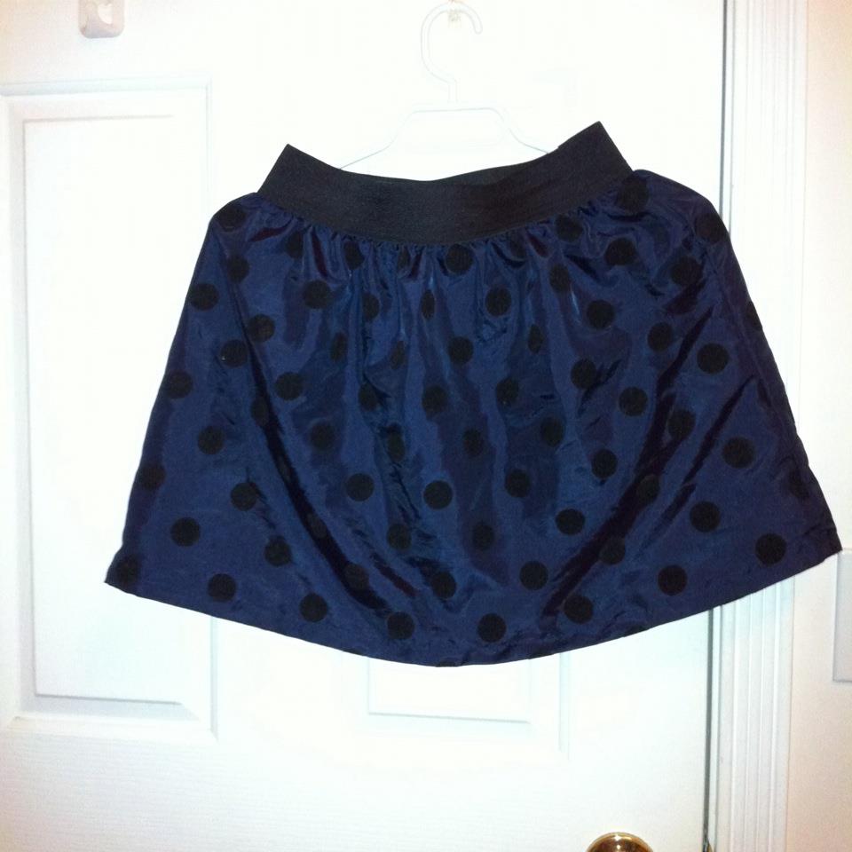 Forever 21 navy blue dress with black polka dots: this was only $5!! Will wear with a white tank, sheer black tights, and a pair of patent black pumps.