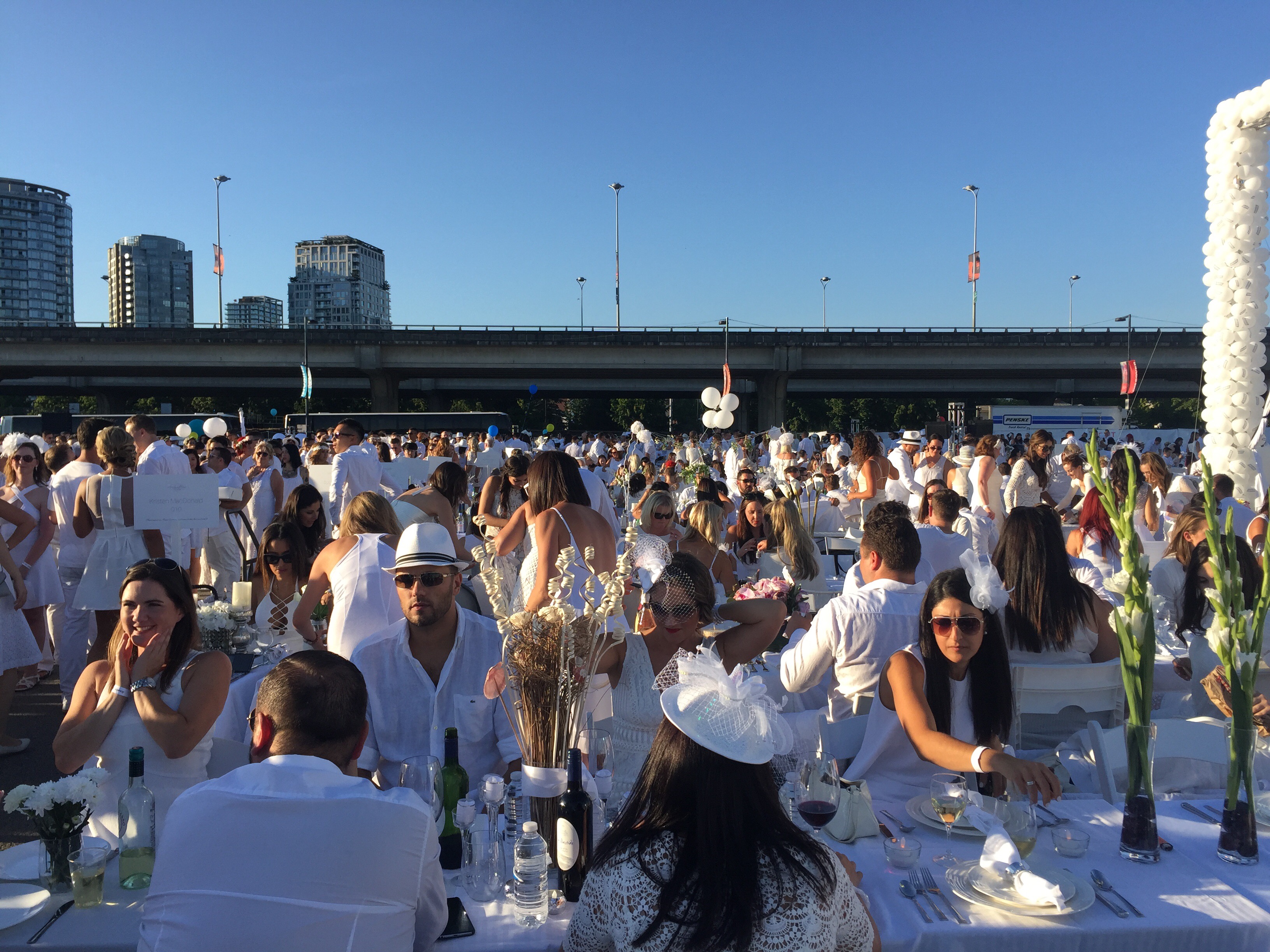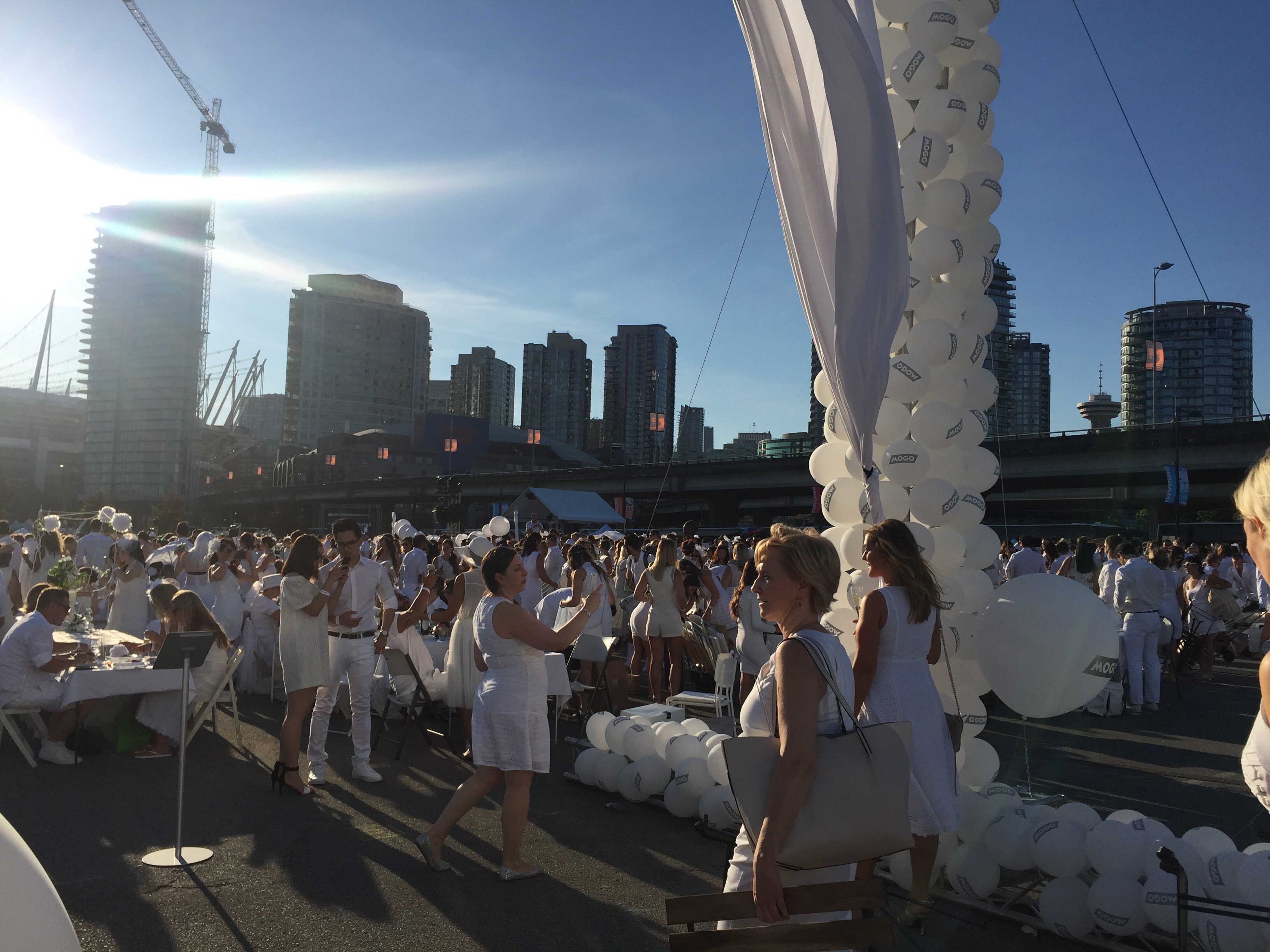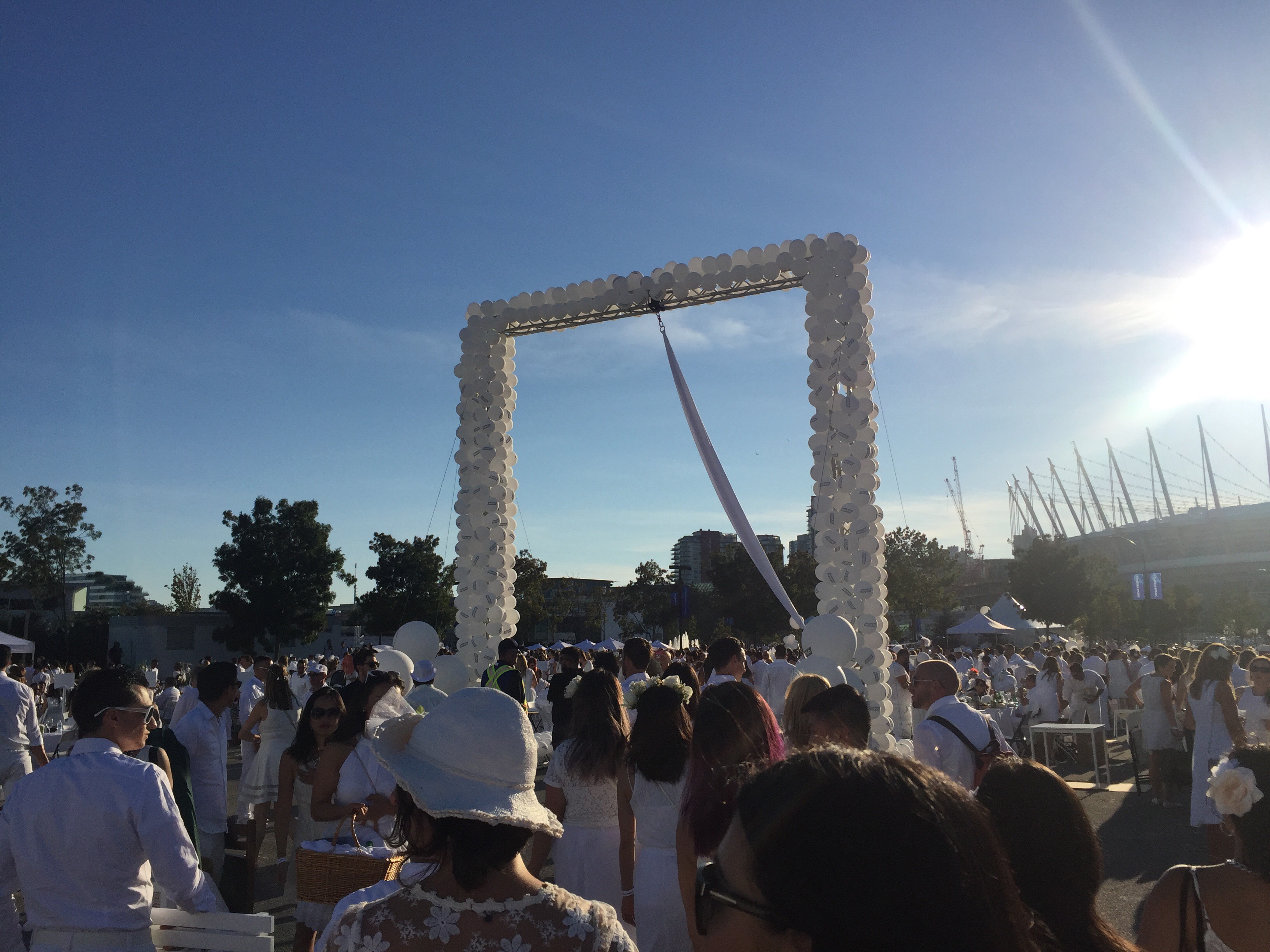 On August 18, I attended the 5th annual Vancouver Diner En Blanc. To give you all some background information for those that haven’t heard of it before, every year a group of people all decked out in white meet at a secret location for a ‘picnic’. Think of it as an upgraded picnic, where everything is carefully set up and you’re dressed fairly well. It is very fun because it is always nice to run into people there and catch up, also, the festivities (especially the live music) are always amazing! From picking what I was going to wear, the evening’s meal, and actually heading to the location, it was all very exciting! I’ll let my photos speak for themselves, I must’ve taken a few hundred that evening!