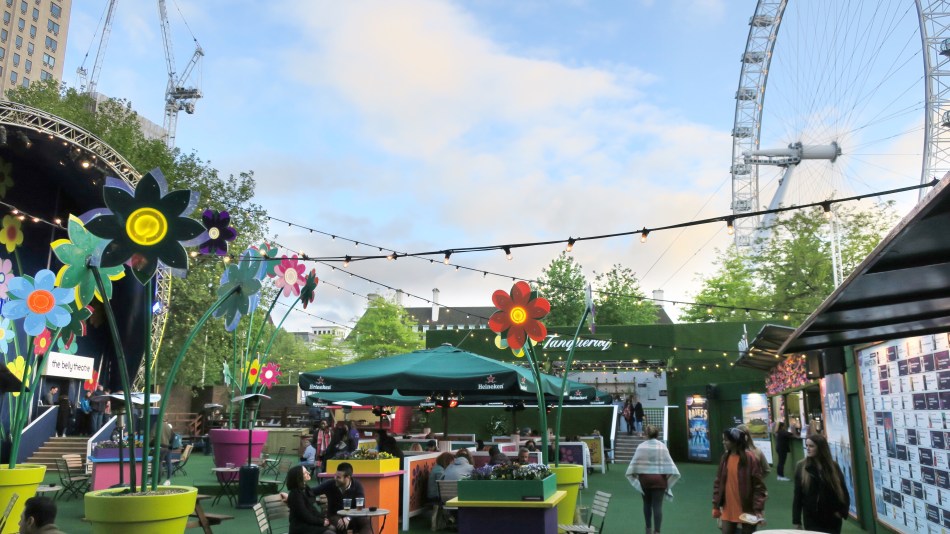When I was in London, I came across the Underbelly Festival. I didn’t proactively find this event, but rather stumbled upon it. I was walking along South Bank one evening when I saw some cool lanterns and a garden-like area filled with people. The decor definitely caught my attention, very summery and colourful, with lively vibes.